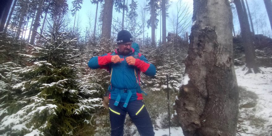 Horní kompresní popruh je opatřen trojzubcem a spodní sponou - Pinguin Attack 45