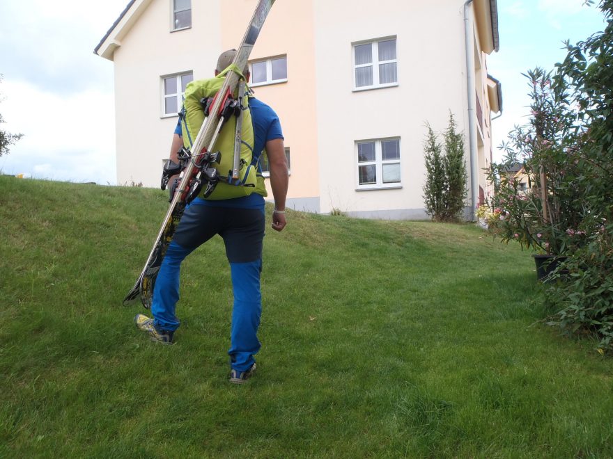 Do boční kapsy můžete dát sondu a násadu lopaty.