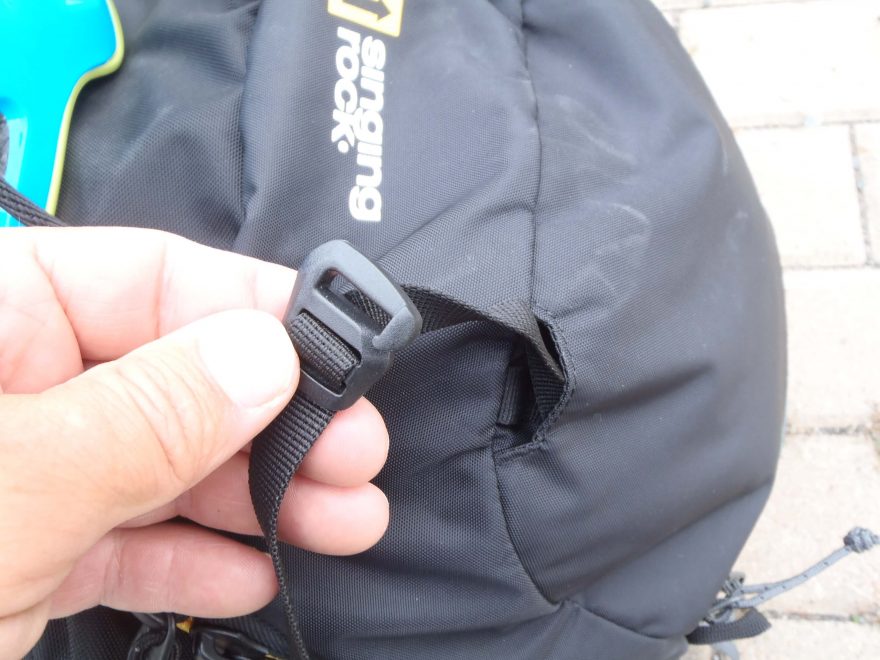 Popruhy na fixaci lana na víku se dají zastrčit do něj a nijak neplandají - Singing Rock ROCKING 40