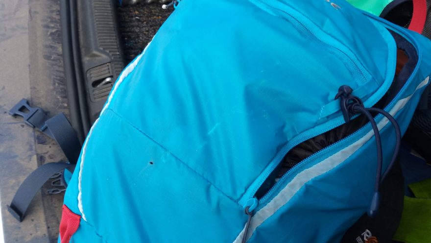 Drobné poškození čelního panelu batohu Vaude Larice 18 od lyží