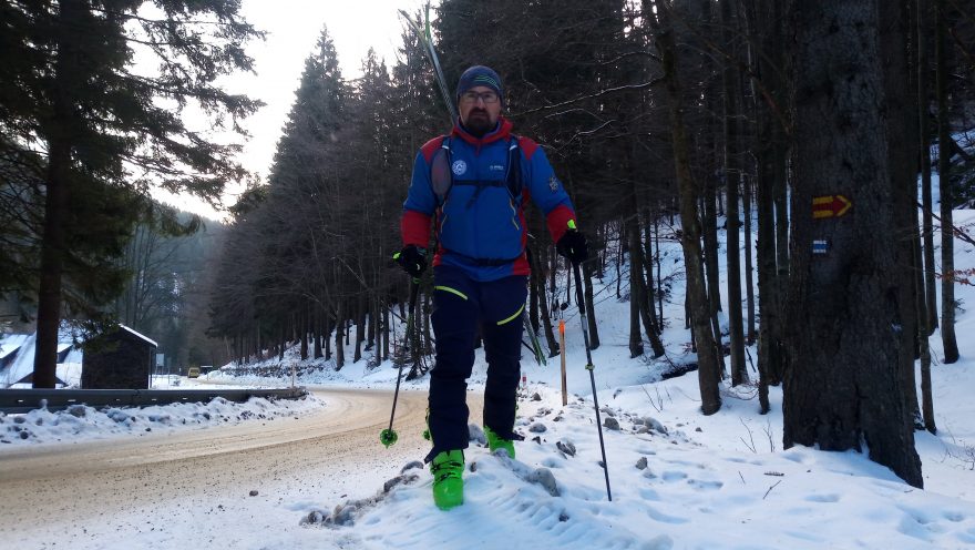 Nástup s lyžemi na batohu Vaude Larice 18