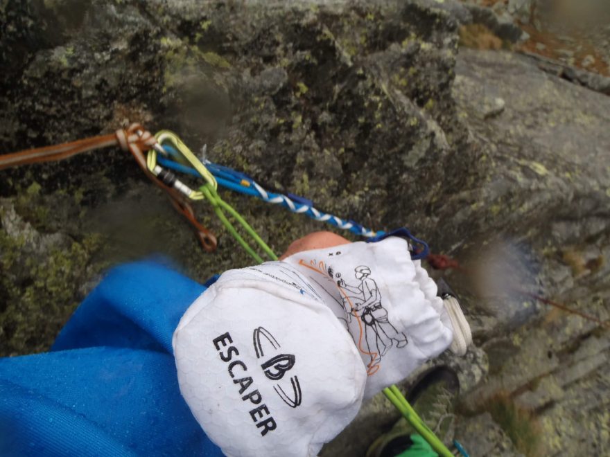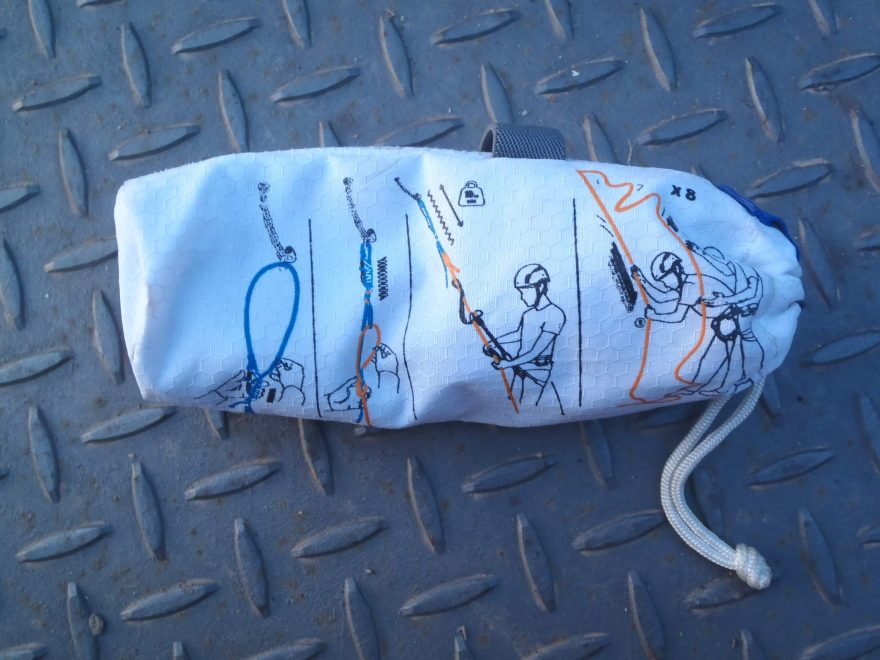 Obal na BEAL Escaper je zároveň i návod a lze pomocí gumičky takto fixovat na zápěstí.
