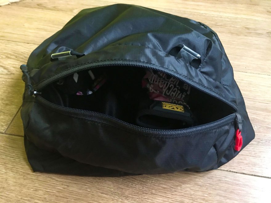 BERGANS W HELIUM 40 L - rozložený batoh včetně otvoru na prostrčení hadice hydrovaku