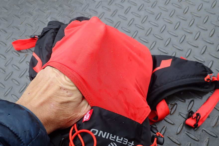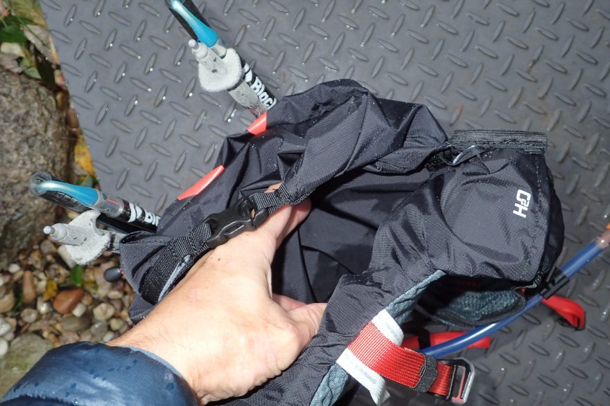 Volné konce konce popruhů batohu FERRINO Dry Run 12 se dají takto zajistit gumičkou.