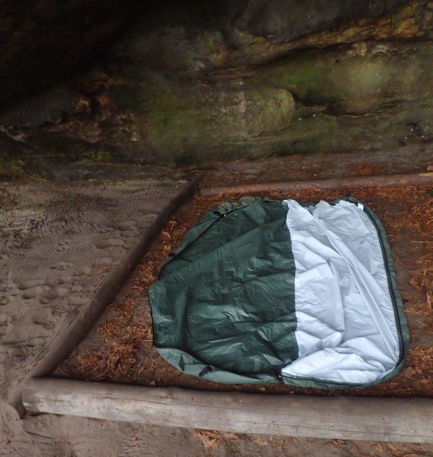 Bivakovací pytel Full zip II poměrně dobře odolává i prudkému nebo déletrvajícímu dešti