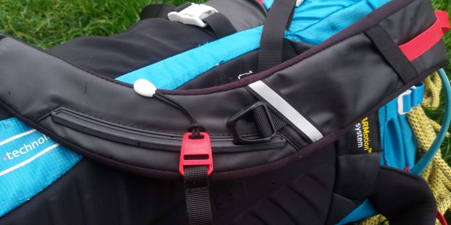 Gumičku lze i velmi jednoduše přetáhnot přes lopatku či tlouk cepínu a takto zajistit - Boll QUANTUM 35-47.