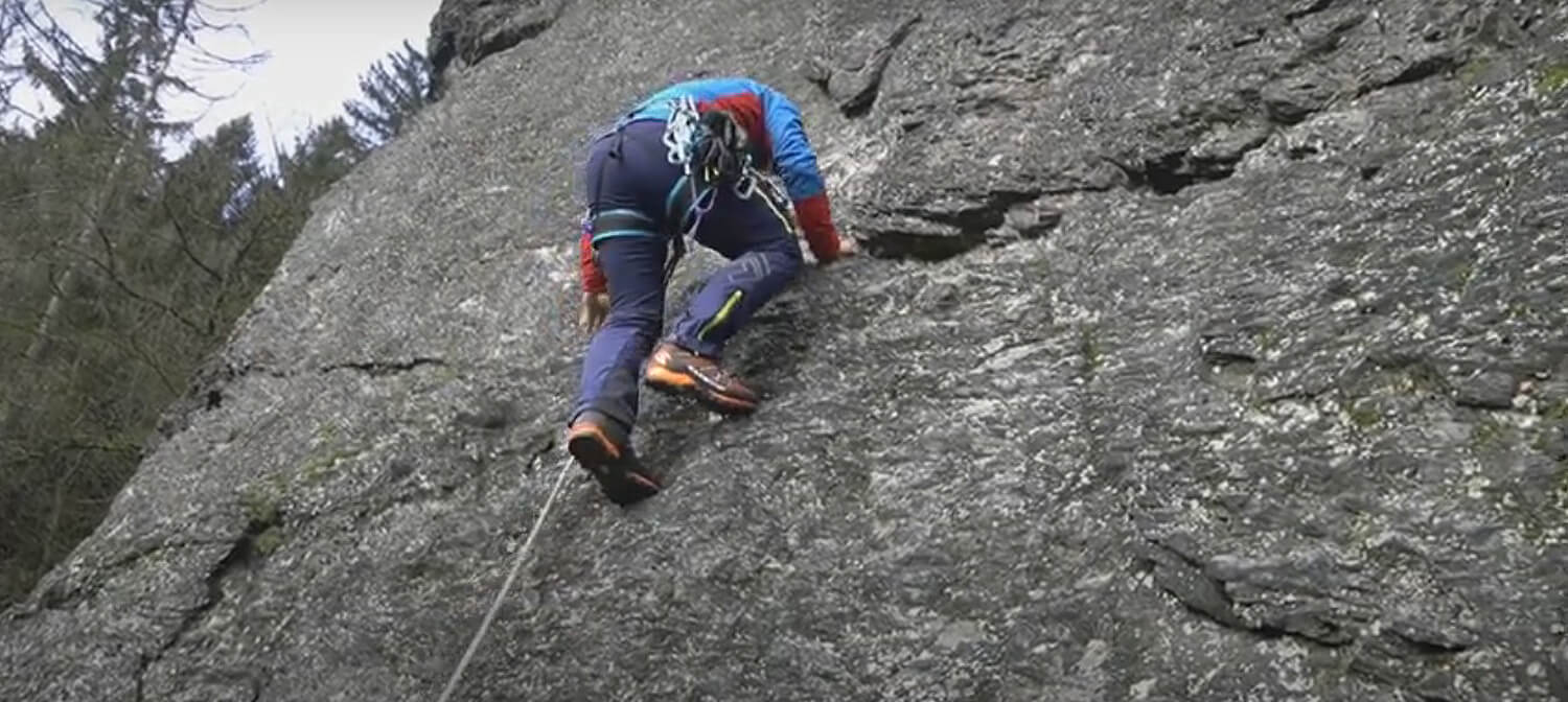 Volné lezení v botech Garmont G-Radikal GTX na skalách