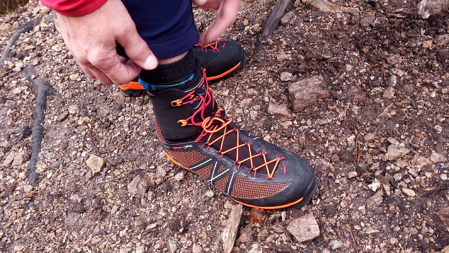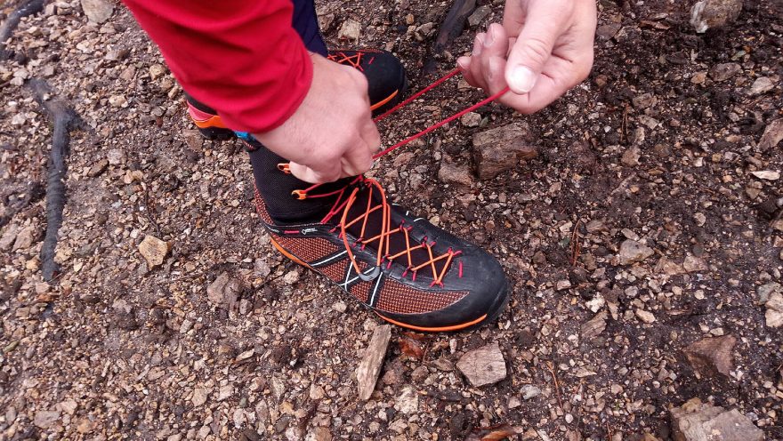 Zastrčení šněrování pod fixační gumičku - Garmont G-Radikal GTX