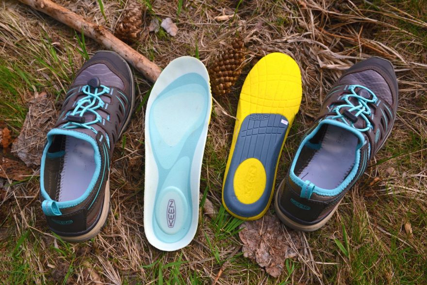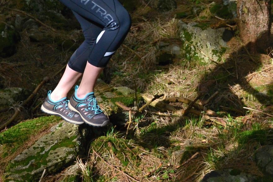 Stélka je posílená v oblasti paty, aby tlumila nárazy při došlapu. Keen Terradora Ethos.