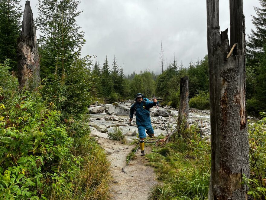 Testování bundy PINGUIN PARKER při aktivním pohybu a nastavování kapuce