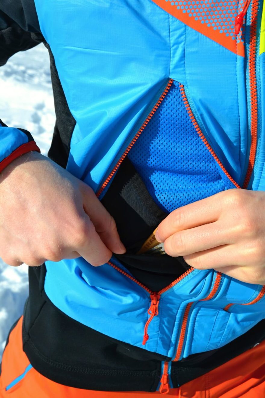 dvě hlavní kapsy bundy Northfinder SOLISKO jsou perfektní pro uložení stoupacích pásů