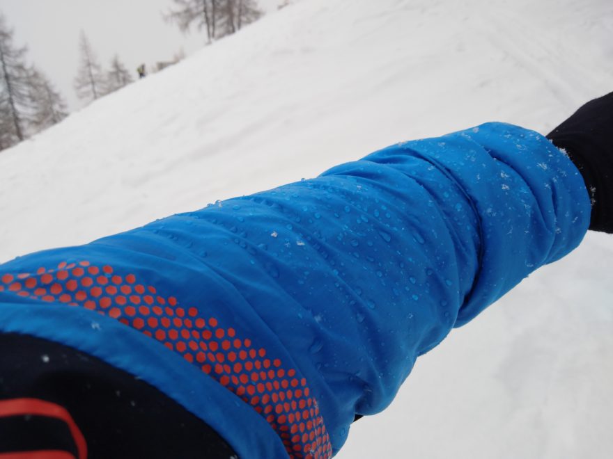 materiál Pertex Quantum na rukávech bundy Northfinder SOLISKO odolá krátkému lehkému sněžení