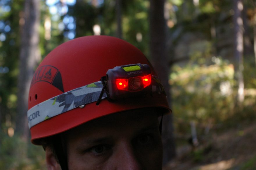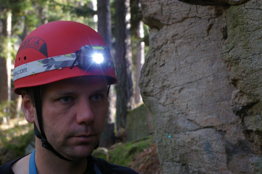 I na helmě můžeme naklopit světlo podle potřeby.