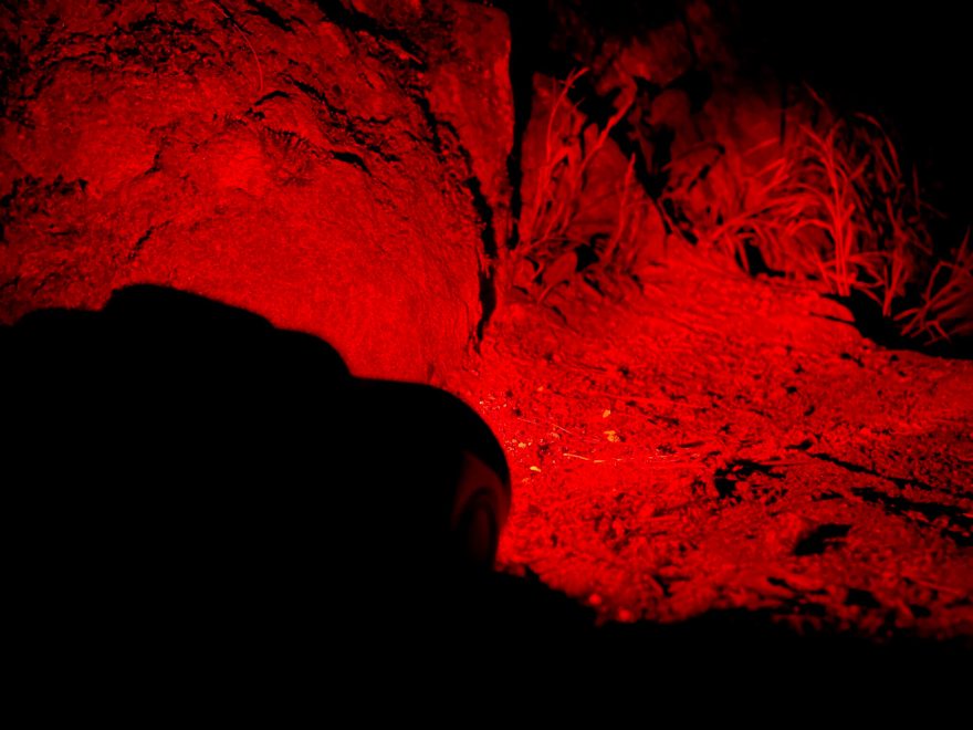 Červené světlo čelovky Ledlenser H19R Signature v noci neoslňuje.