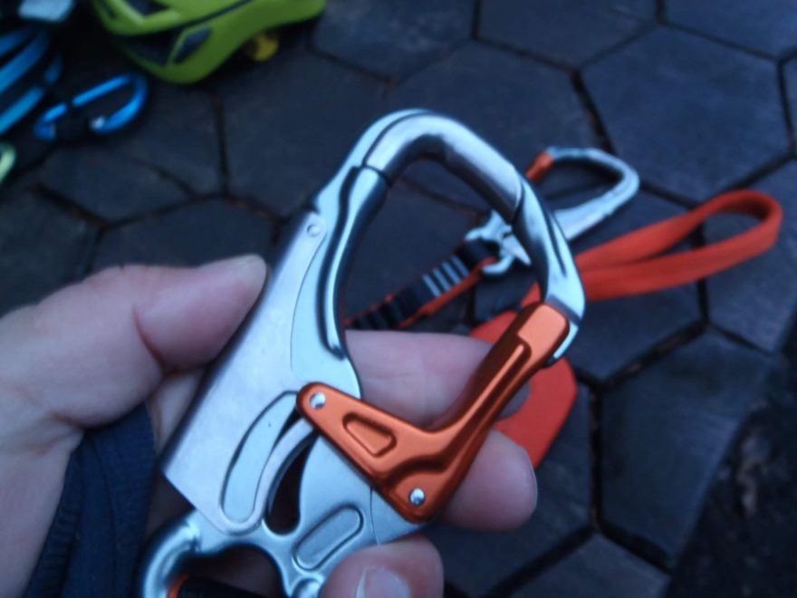 Detail spojení tlumiče pomocí liščí smyčky – Climbing Technology Top Shell Slider.