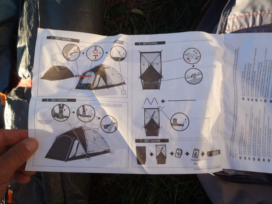 Návod ke stavbě stanu Coleman Drake 3 je k obalu přišitý, takže ho neztratíte.