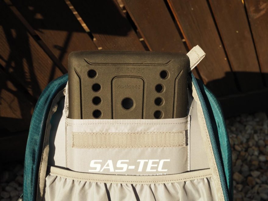 Síťka se dá na batoh upnout hned několika způsoby. Toto je jeden z nich.