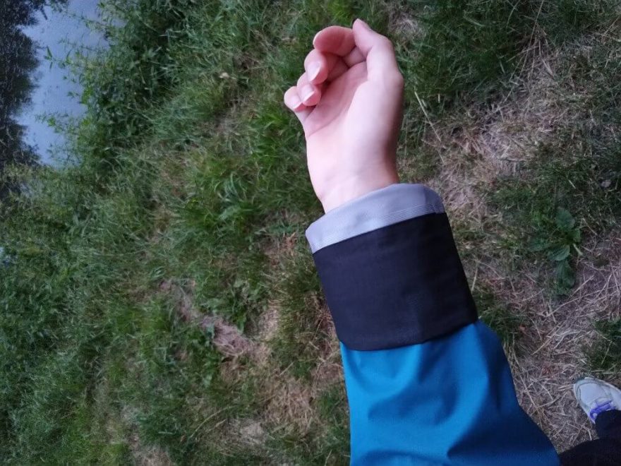 Prodloužený střih rukávu na hřbetu ruky je výhodký pro držení hůlek nebo zábradlí.