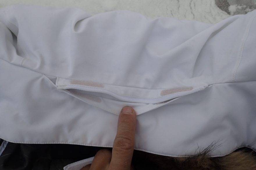 Hlavní kapsa s kovovým táhlem u bundy Hannah Sachin.