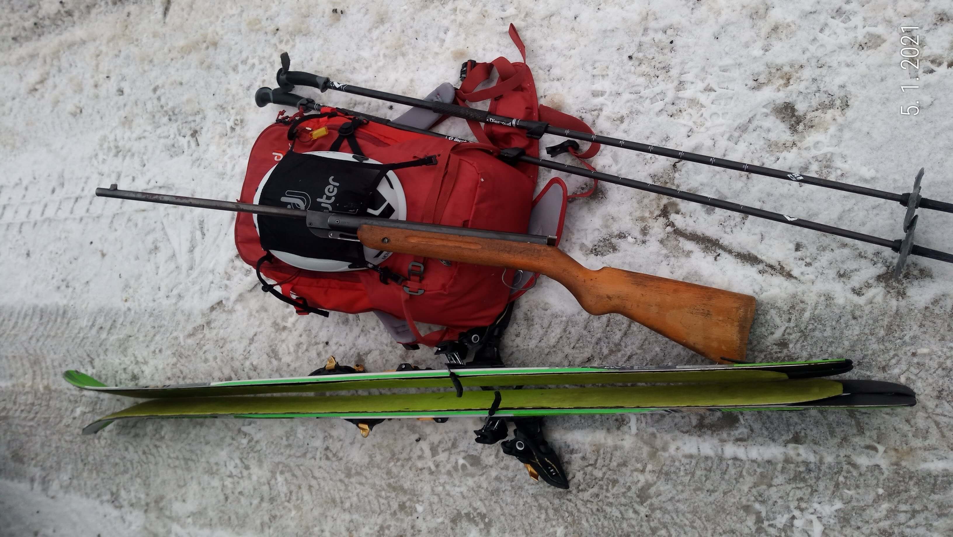Když jde do tuhého je možno na batoh fixovat i pušku - Deuter FREERIDE PRO 34+