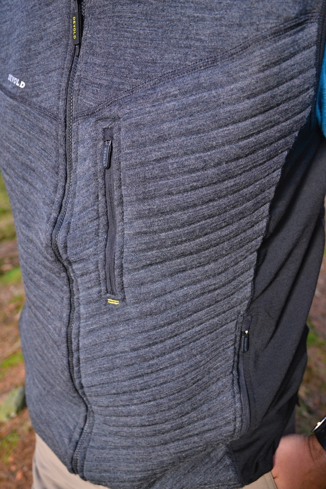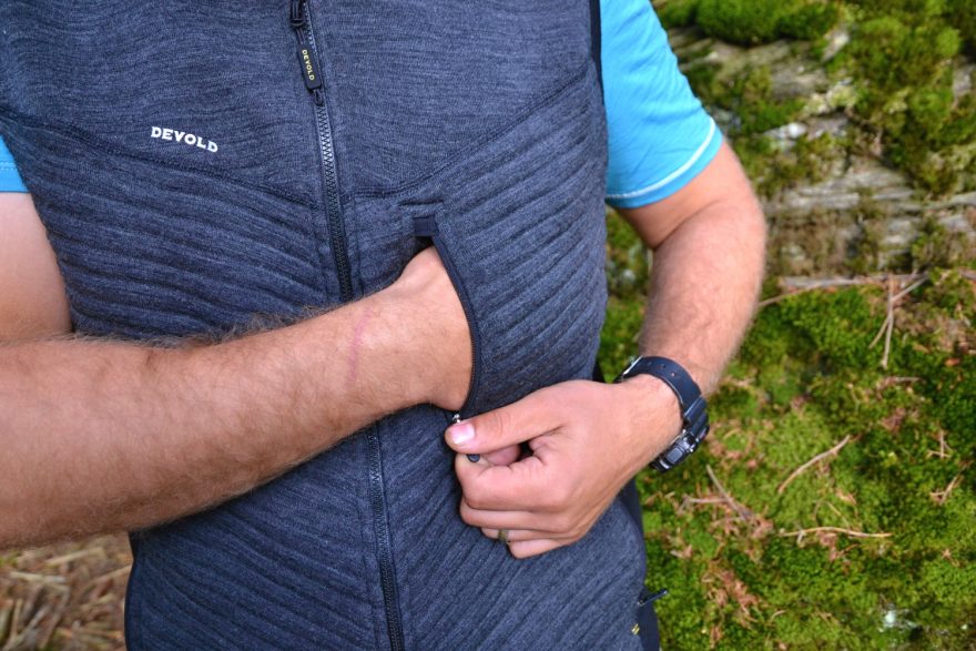 Dvě boční kapsy na zip – vesta Devold Tinden Spacer.
