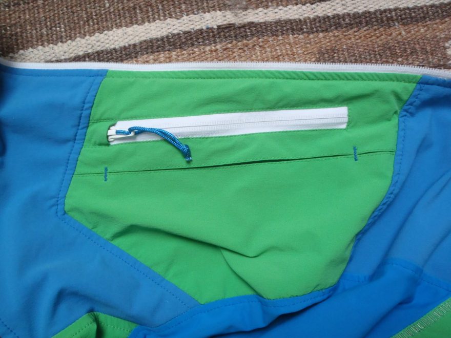 Detail jedné z hrudních cargo kapes bundy Direct Alpine Mistral.