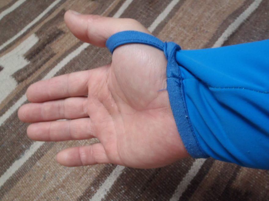 Zastrčená elastická kapuce do límce bundy Direct Alpine Mistral.