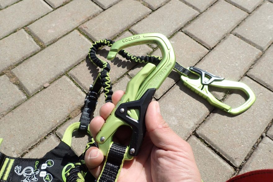 Dlaňová karabina u sedáku Edelrid Jester Comfort má příjemný chod.