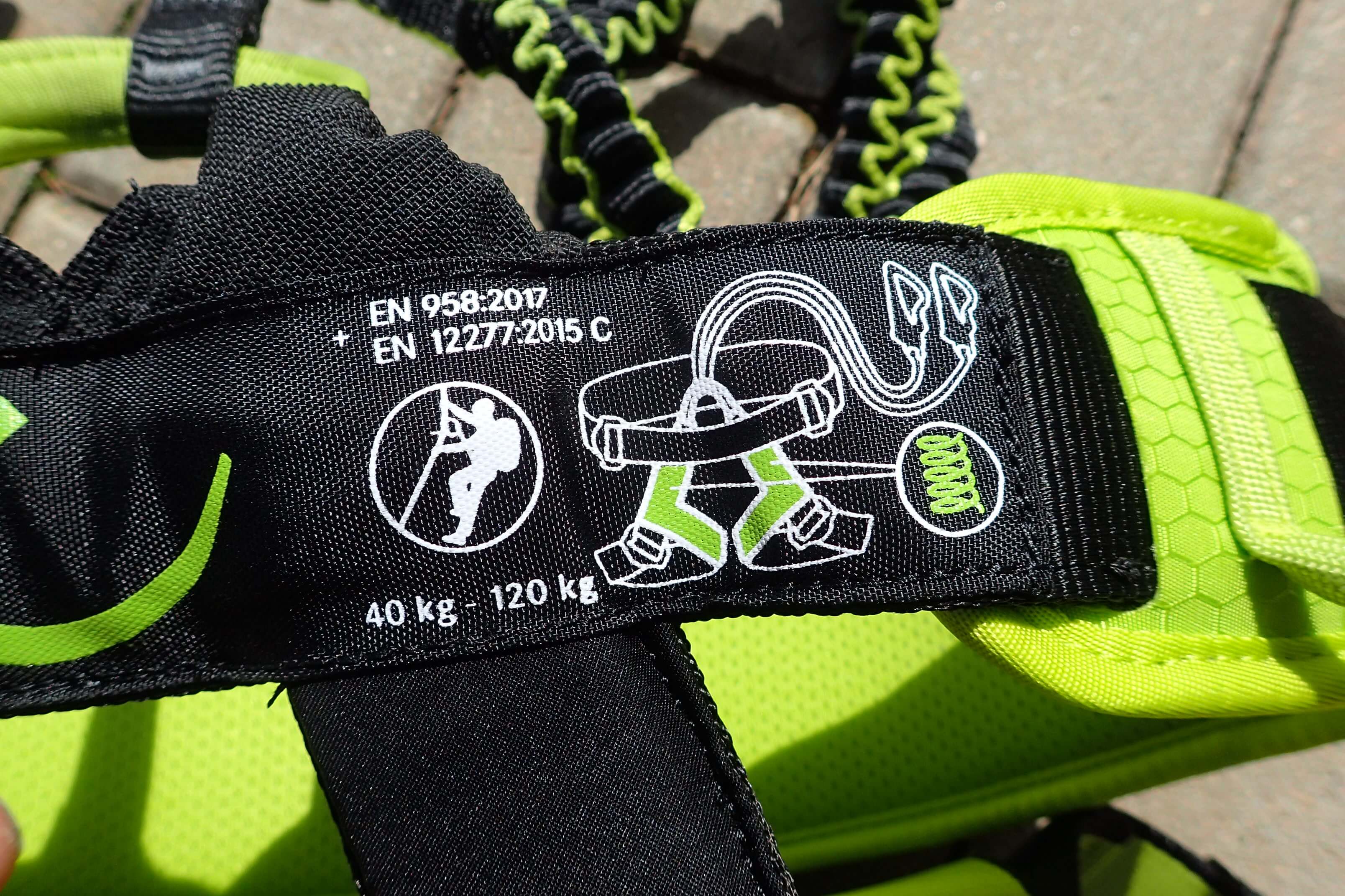 Tlumič pádu integrovaný v sedáku Edelrid Jester Comfort vyhovuje nové normě.