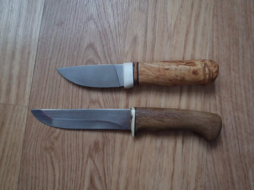 Detail na logo EnZo a ocel 12C27 na čepeli stavebnicového nože – EnZo Skinner Curly birch kit.