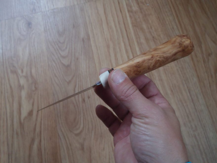 Pohled na stavebnicový nůž – EnZo Skinner Curly birch kit.