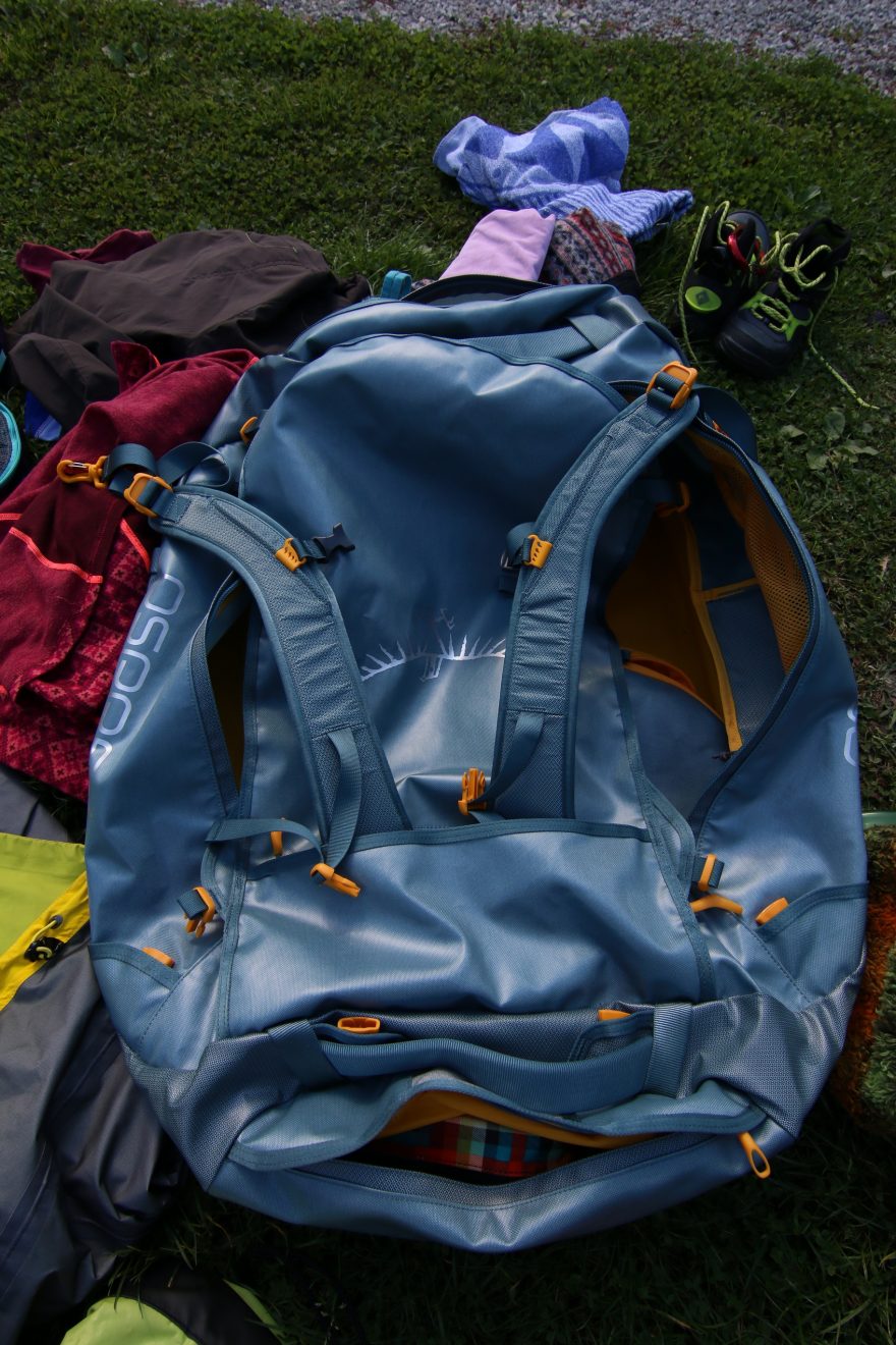 Sbalená taška OSPREY Transporter připravená na Rujánu.