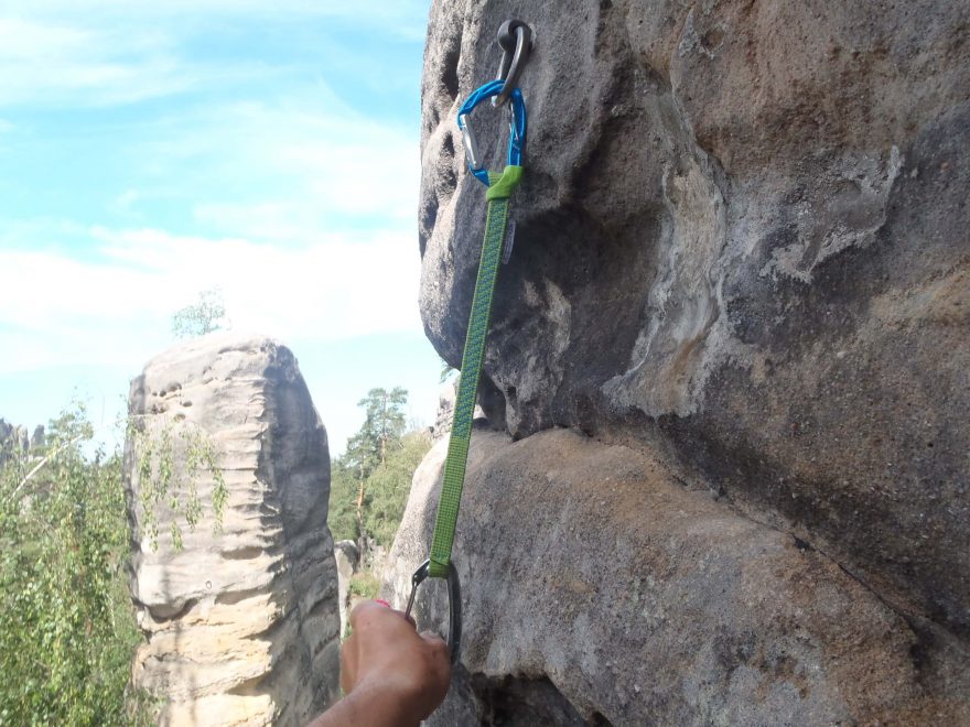 Teď už stačí do expresky Climbing Technology Tricky pouze cvaknout lano.