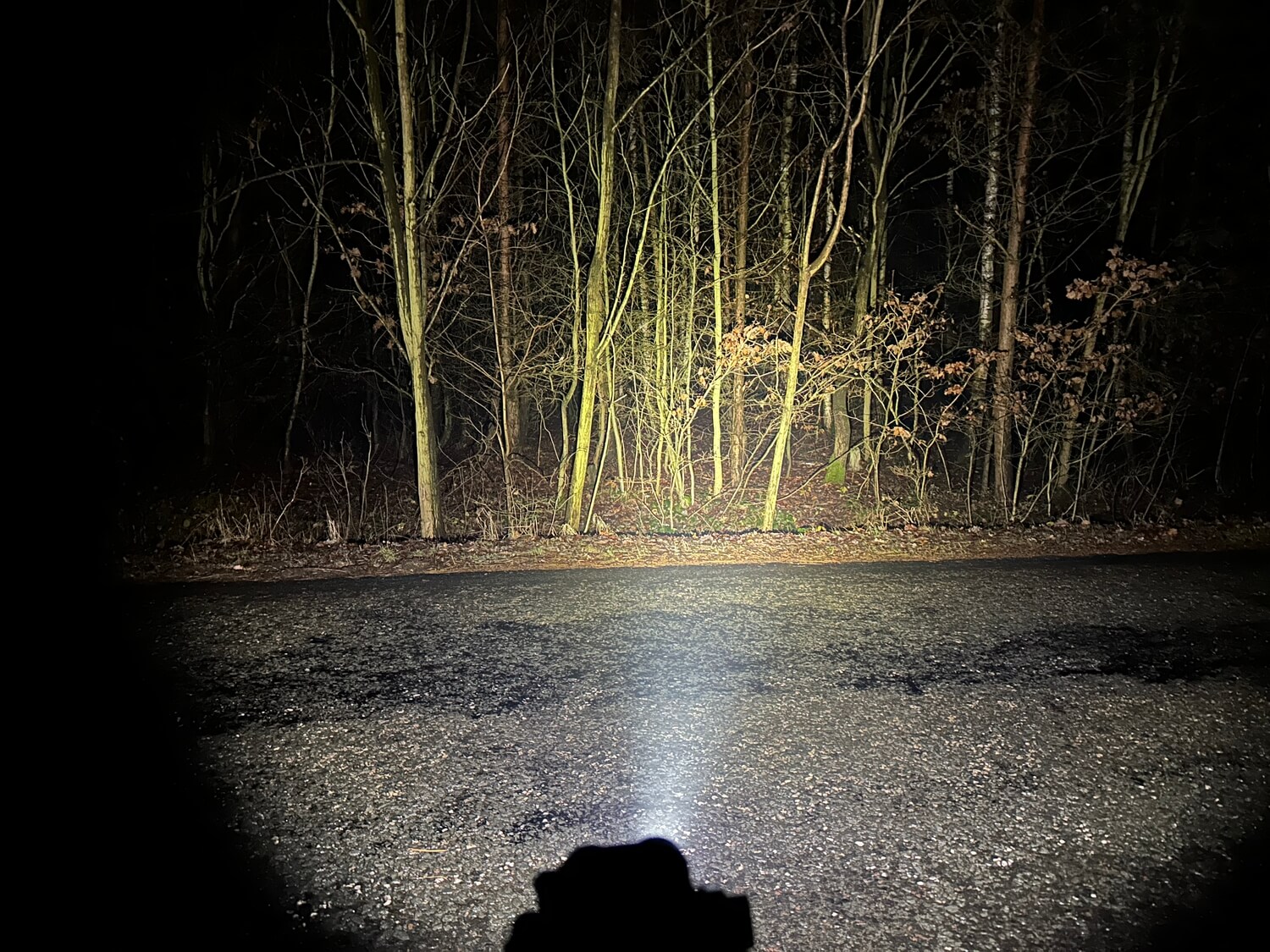 Bílé světlo, úzký kužel, nejvyšší intenzita, stromky jsou vzdálené 9 metrů.
