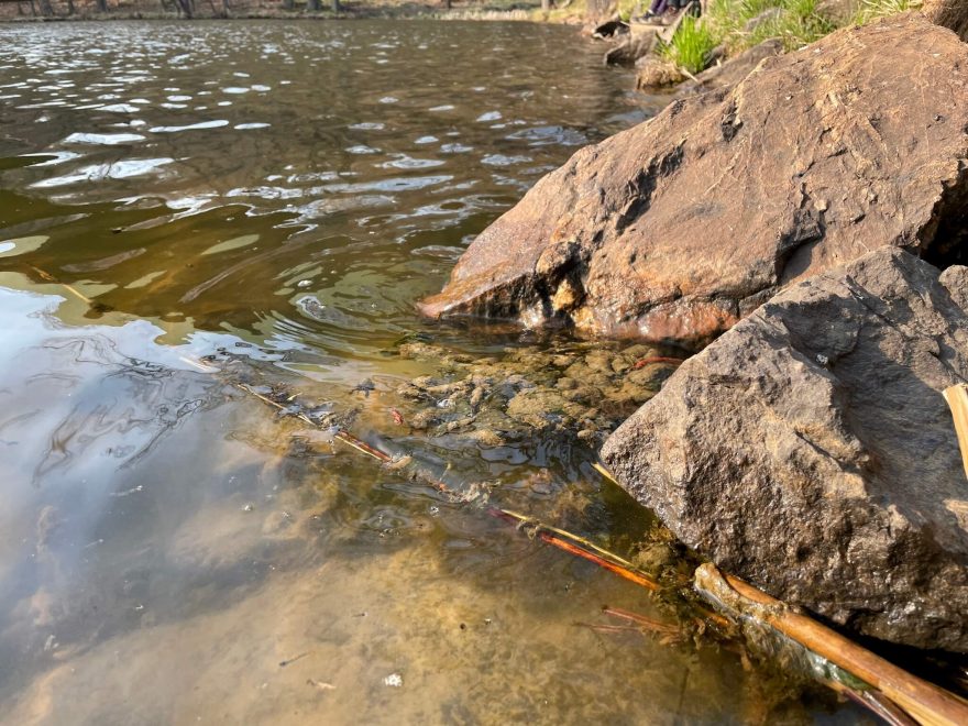 Porovnání přefiltrované vody z rybníka vlevo, rybniční voda vpravo.