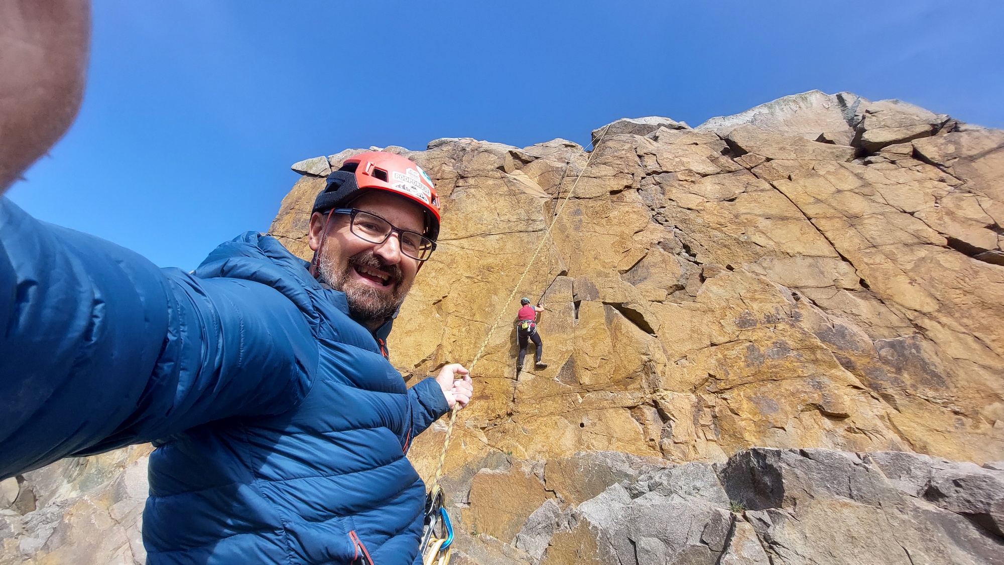 Bunda FORCLAZ MT 500 jako izolační vrstva při jištění na skalách