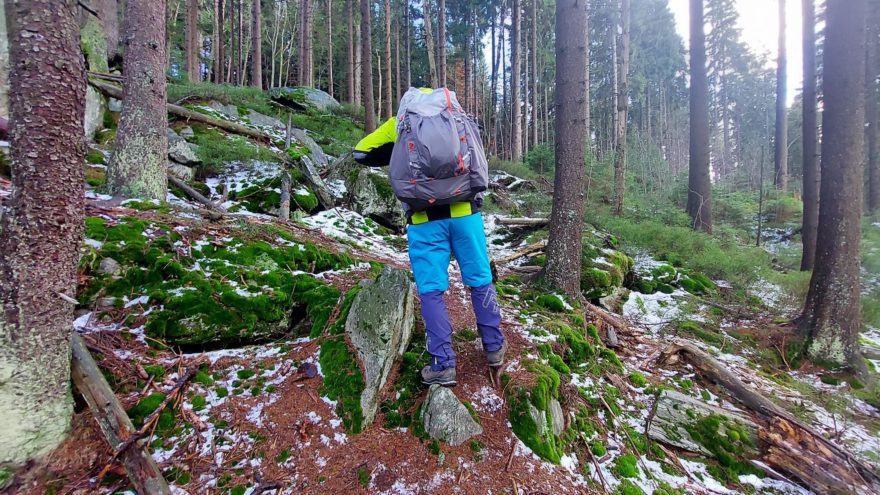 Toto řešení drží bederní pás otevřený a usnadňuje nasazení na záda - FORCLAZ MT900 UL