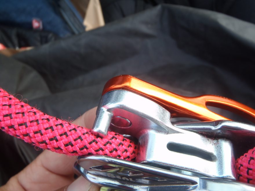 Ve vyklopené bočnici je zřetelný otvor pro prostrčení šroubu a zajištění bočnice BEAL Birdie