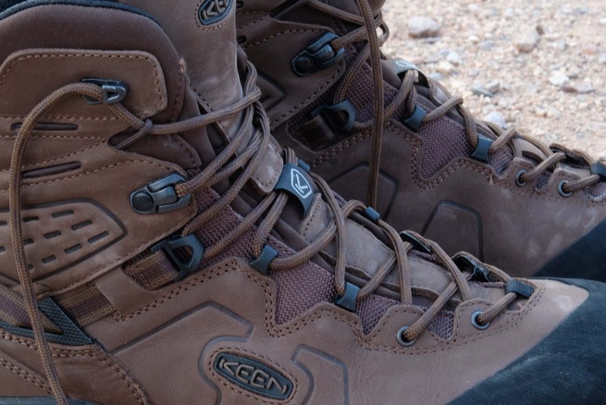 KEEN Karraig. Detail široké gumové špičky a systému stažení boty.