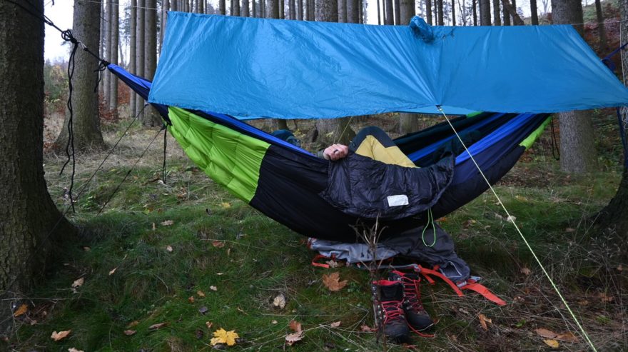Detail zavěšení KWAK UNDERQUILT ALKES L pomocí pružných kordů a samosvorek