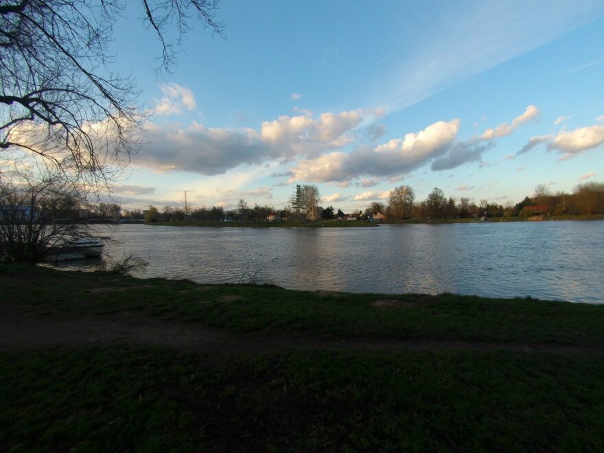 Skialpinismus v Rakousku s protisvětlem v levém horním okraji snímku – opět výrazná vinětace