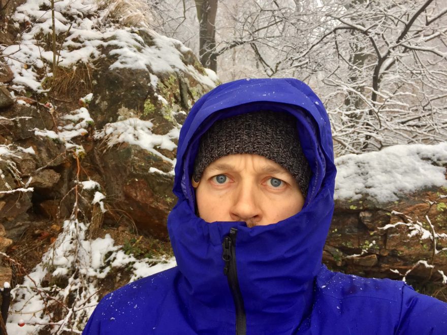 Krytí brady s bundou Marmot Knife Edge.