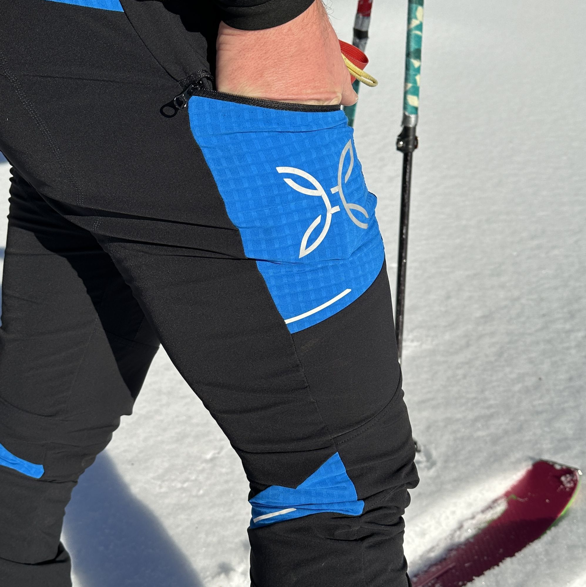 Velká kapsa u kalhot Montura, v podkolení jsou vidět odrazné proužky pro pohyb za zhoršené viditelnosti
