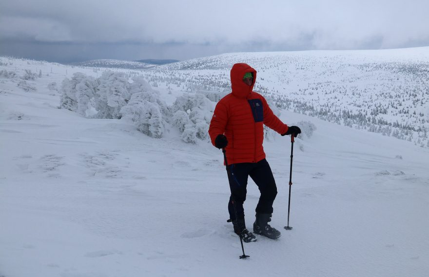 Dobře padnoucí kapuce a vysoký límec péřovky MOUNTAIN EQUIPMENT BALTORO JACKET