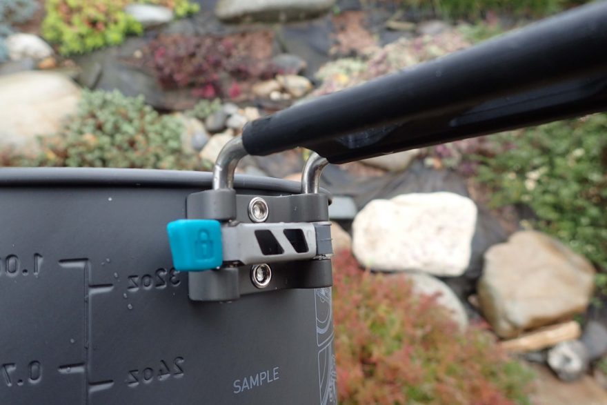 Zajištěné madlo umožňuje jistou manipulaci s hrncem Sea to Summit Alpha Pot.