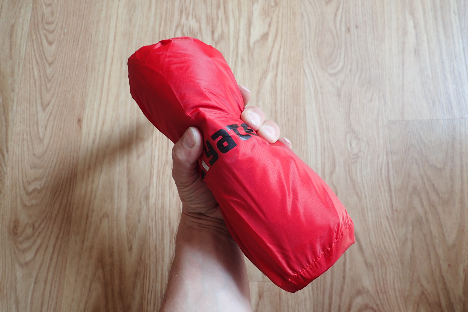 Sbalená nafukovací karimatka YATE Scout je opravdu malá.