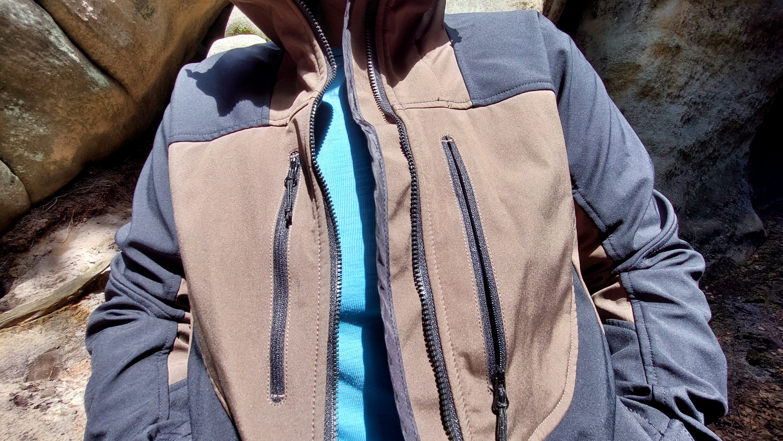Kapsy na hrudníku pojmou i větší telefon a jezdci jsou opatřeny táhli - NORTHFINDER ADVENTURE 3L ZARA