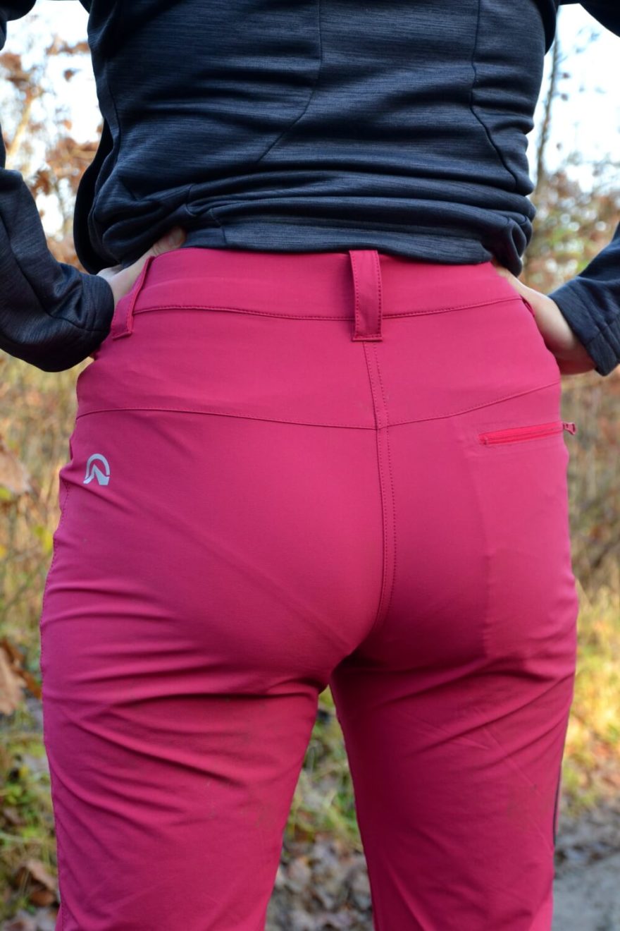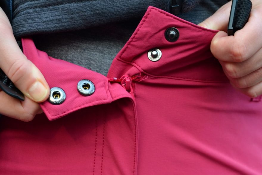 Dotažení v pase umožňuje integrovaný opasek s plastovou sponou. Dámské outdoorové kalhoty Northfinder Mattie.