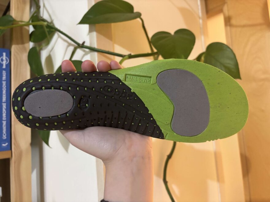 Detailní pohled na vnější stranu, kde je vidět semišová kůže a kulaté tkaničky