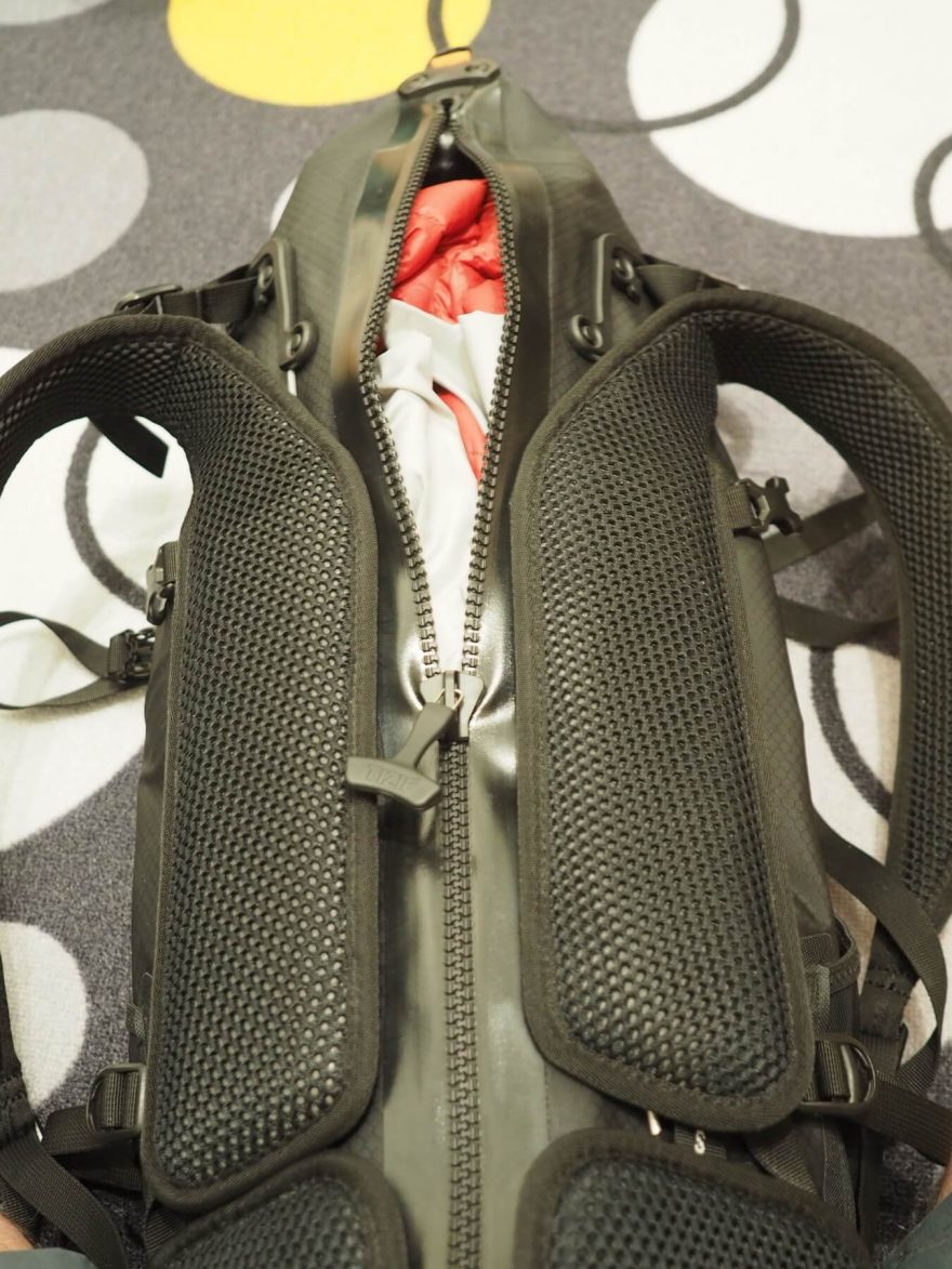 Detail zipu zadního vstupu do batohu Ortlieb Atrack BP 25.